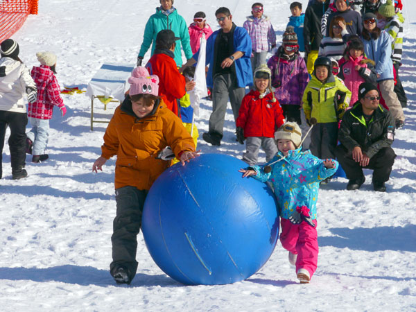 参加費無料の雪の上の運動会!雪上フラッグス、障害物レース、大玉ころがし、つなひき等を予定しています。
