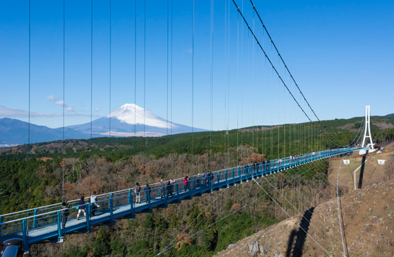 伊豆と箱根の中間に位置しており、晴れた日は橋の上からは「富士山」・「駿河湾」が一度に楽しめます。橋の上から見える絶景をお楽しみください。