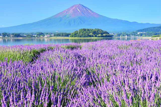 河口湖畔の大石公園など中心におよそ1万株のラベンダーが咲き誇り、世界遺産「富士山」と河口湖をバックにラベンダーとのコンストラストは実にフォトジェニックです!!