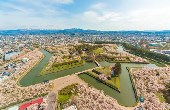 弘前公園は東北屈指の桜の名所として全国的にも有名でさくら名所100選にも選ばれています。園内にはシダレ桜や八重桜をはじめとして52種、約2600本の桜が咲き誇ります。樹齢100年を越す桜の木が多くあり、中でも二の丸にあるソメイヨシノは1882年(明治15年)に植えられたもので現存するソメイヨシノの中でも最古級とされています。