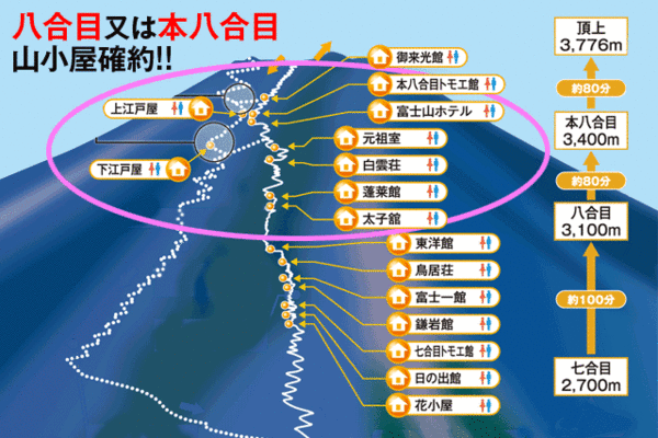 頂上まで約90分。登頂に有利な「本八合目」の胸突江戸屋(上江戸屋)宿泊プラン。うれしい8つの特典付!