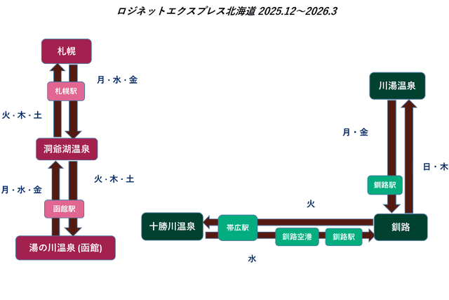 | LE019 | 釧路⇒十勝川温泉(しかりべつ湖コタン開催期間) | ¥8,000 | |